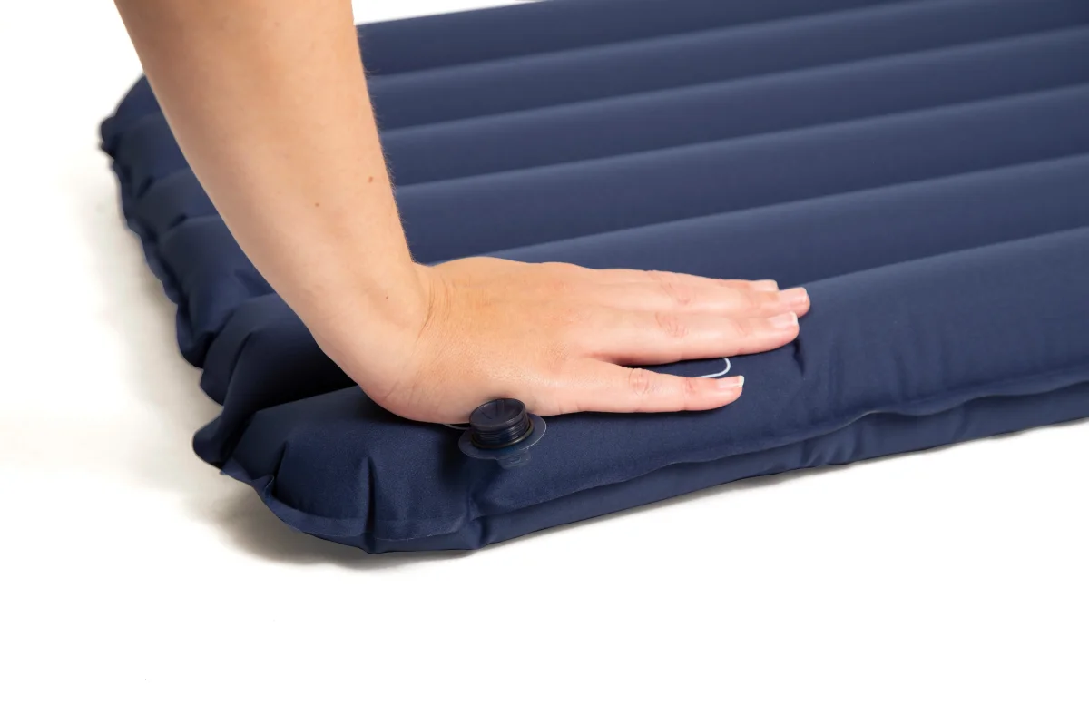 Colchoneta rectangular con bomba integrada para un inflado rápido y sencillo.