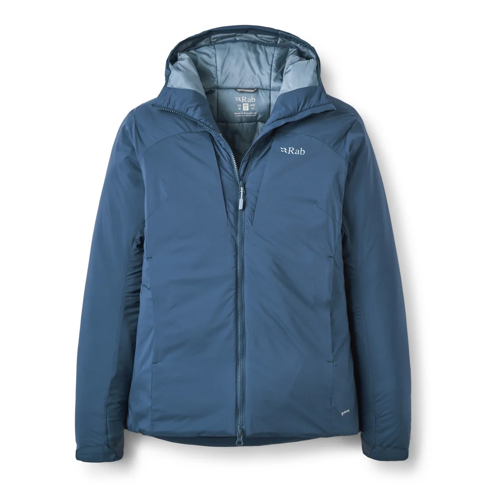 El relleno sintético proporciona aislamiento térmico, manteniendo el calor corporal incluso en condiciones de humedad. La chaqueta cuenta con una capucha ajustable que ofrece protección adicional contra el viento y la lluvia. Además, tiene un cierre frontal de cremallera completa que facilita el ajuste y la ventilación.